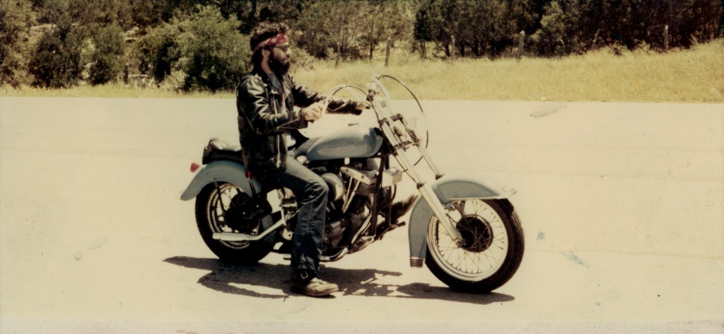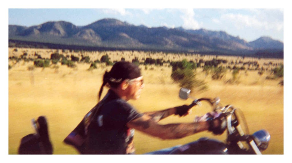 Seriously, how do you describe the challenge of leaning into a hard curve on a twisty mountain road in the Colorado Rockies, just a hair’s breadth from the high side that’s gonna hurt like hell if you don’t maintain your line? What words can match balling through the New Mexican desert alone on a star-studded night, with ghost shadows marching across the sands as the chill night air seeps through the seams in your leather jacket? Can language even begin to capture the feeling of blasting through the heart of Dallas on a Saturday evening, twenty or thirty of you in a pack, so there in that moment – so large and loud and alive – that the straights in their cars instinctively move aside to let you pass? How do you tell someone who’s never been there about rocking through a mountain pass on a chilly autumn morning, sun at your back and your best road dog at your side as you crest the Continental Divide and rumble down into the Black Canyon of the Gunnison? Can you make any sense at all of the delight you feel waking up in a rain-soaked tent in Rapid City, South Dakota, on your way to the annual rally at Sturgis, and laughing about it because Who fuckin’ cares? We’re at Sturgis, baby!