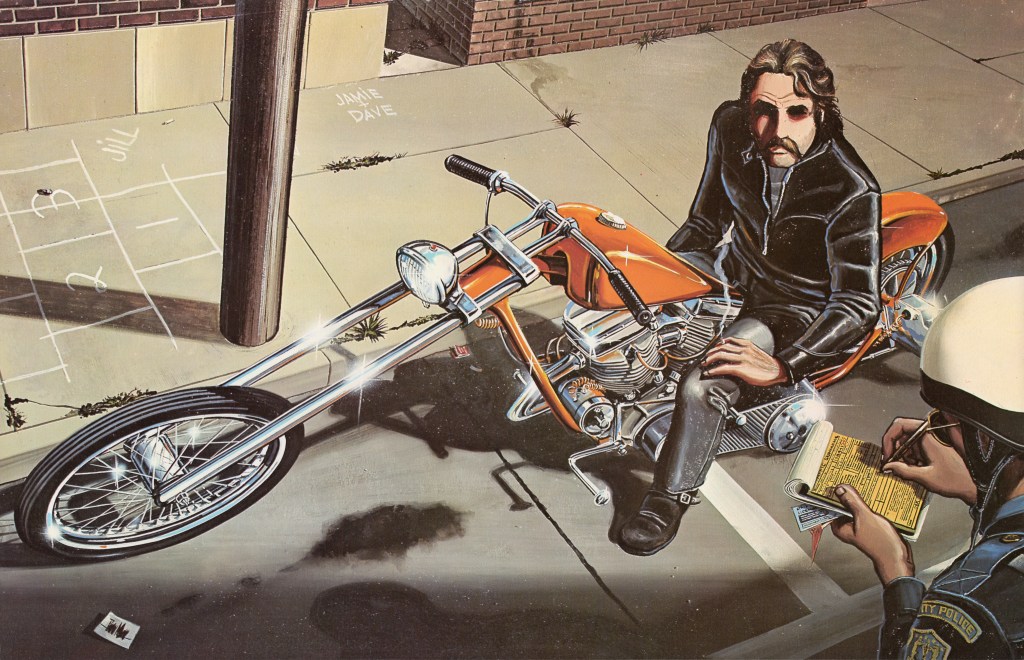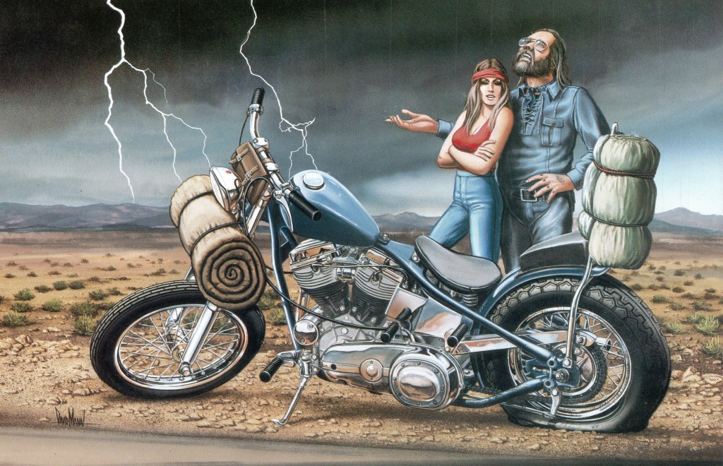 Things like kneeling in the mud in a pouring rainstorm to help a stranger get his motorcycle started, because the biker’s code says you never leave another rider behind. Things like facing off with a shotgun-wielding deputy sheriff who is screaming at you and your buddies to get those goddam bikes out of there before he arrests the lot of you, because one of your buddies can’t get his bike started and the biker’s code says you never leave another rider behind. Things like your buddy suddenly remembering, after twenty minutes of trying to kickstart his shovelhead, that he installed a hidden kill switch as a security device just last week, and Oh, yeah! That’s why my bike won’t start….