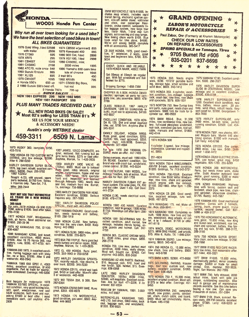 And if that’s hard, try explaining how even the ‘bad stuff’ gets good, later. Things like riding through the wake of a hurricane in downtown Houston, water so high on the road that it’s burbling and bubbling at the ends of your exhaust pipes and dousing your ignition system. Things like spending a sleepless night camped on the banks of the Rio Grande, kept awake by the bitter cold and the new traveling companion who neglected to mention that he snores like a fuckin’ buzzsaw.