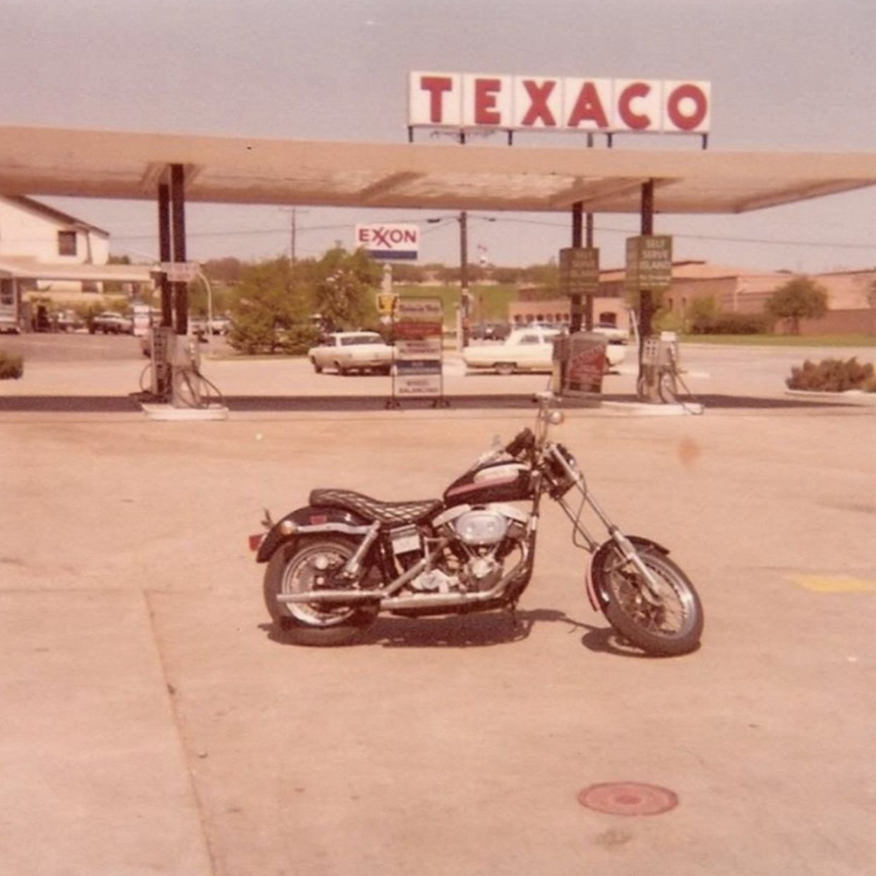 I’d had enough of East Texas, so me and another fellow – a stranger – partnered up for the long ride back to Austin. Good thing for him, too, since his headlight went out before we reached the Montgomery County line. I rode beside him the rest of the way back to Austin, the little seven-inch sealed beam on my shovelhead the only light to advise oncoming motorists of our presence!