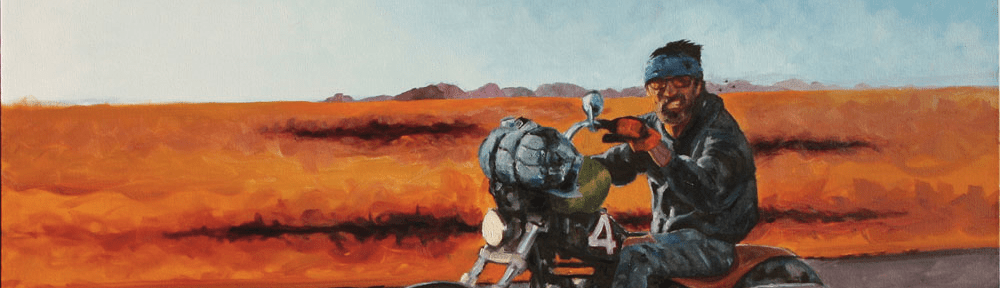 Finally, in this recent canvas, GTP notes that he ‘wanted to paint a loser with a busted ass bike and it ended up being a self portrait.’ He was raffling off the original canvas, and noted, ‘I’ve been off my Shovel for long enough and this raffle will send some cash in the right direction!’ I can relate! If they were still on offer, I’d buy a ticket or two myself! 😎