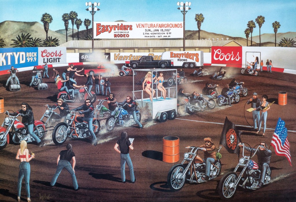 Those of us who were fans and collectors of David Mann‘s art were pissed that some of his monthly centerfold paintings were nothing more than advertisements for Easyriders events like the rodeo….