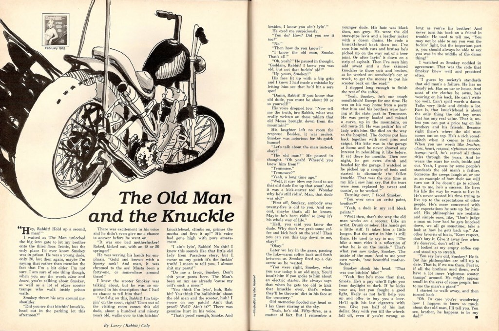 Larry (Rabbit) Cole was one of my favorite writers in the magazine’s best years. I have no idea what his personal history may have been, or what became of him once he stopped writing for Easyriders.