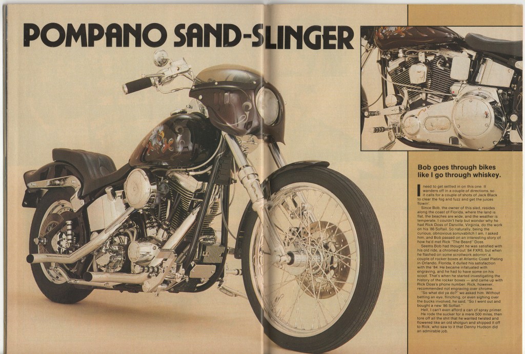 In their place were Harley owners posing with made-to-order machines (see above) that they’d purchased in a shop and paid someone else to customize: ‘RUBs’ and ‘Rolex Riders’ who wouldn’t be caught dead mingling with the street bikers who made the magazine what it was. Builders like Arlen Ness and Rick Doss and pseudo-clubs like the Hamsters were given loads of press, with photos and glowing articles. Meanwhile, old school builders’ efforts were relegated to a tiny spread titled ‘Readers’ Rides’. No one seemed to remember or care that, back in the day, featured bikes were all ‘Readers Rides’! ๐Ÿ™„
