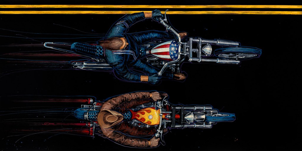 A unique take on the anti-heroes of Easy Rider (1969) by artist Ray Drea.