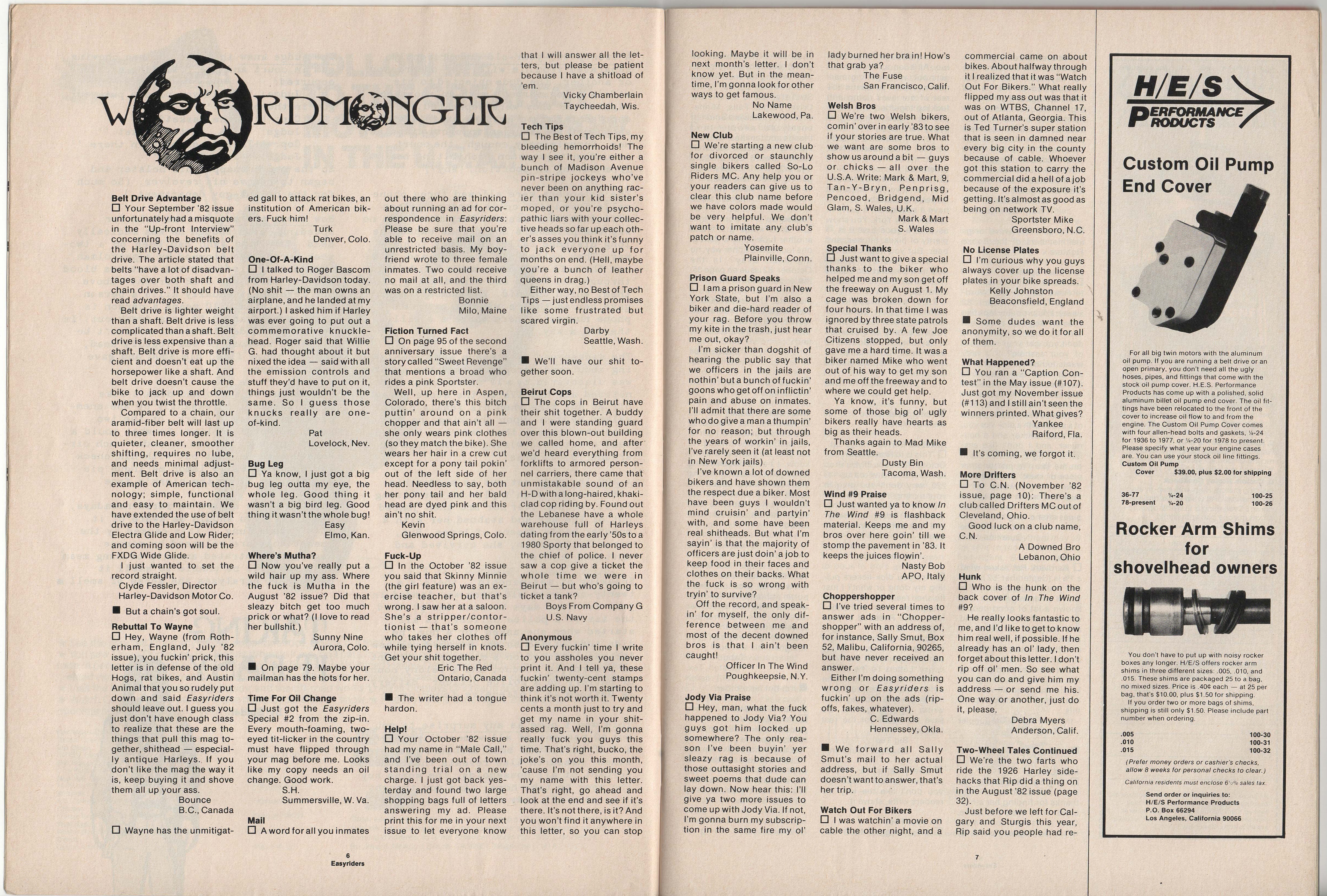 These appeared in Easyriders # 118 in February 1983 ‘In the Wind’ pages.