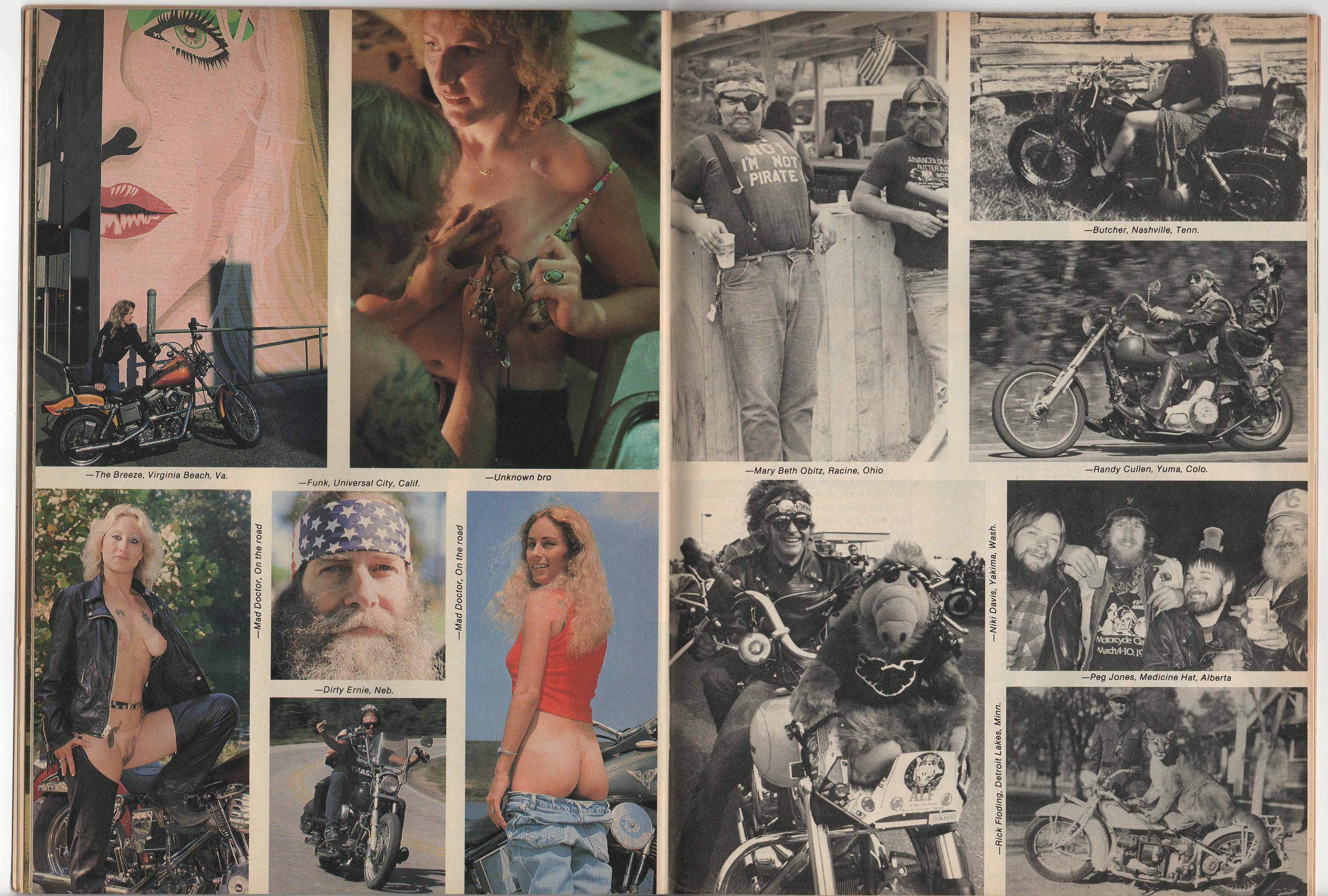 For starters, Easyriders had bare-breasted models draped over choppers or curled up against the bikes’ owners: real biker women – often the bike owner’s ol’ lady – with tattoos, pimples and other ‘flaws’, showing more skin than other bike rags would dare.