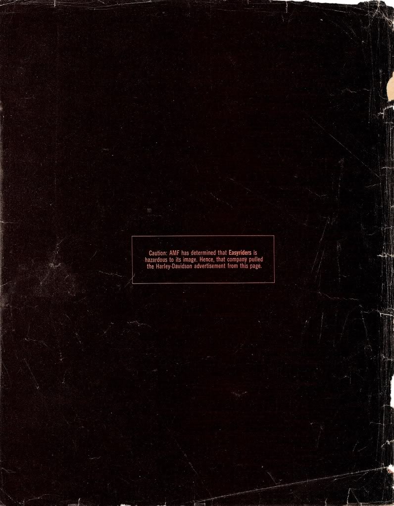 However, three issues later, the MoCo had a change of heart. They yanked their full-page advert at the last moment. Easyriders‘ editors responded with the black box page above.