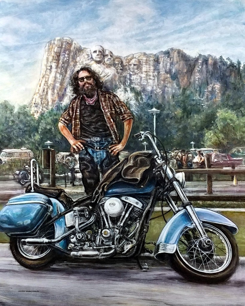 ‘Sturgis Run, ’87’ by Lyndell Dean Wolff (2024) acrylic on foamboard
