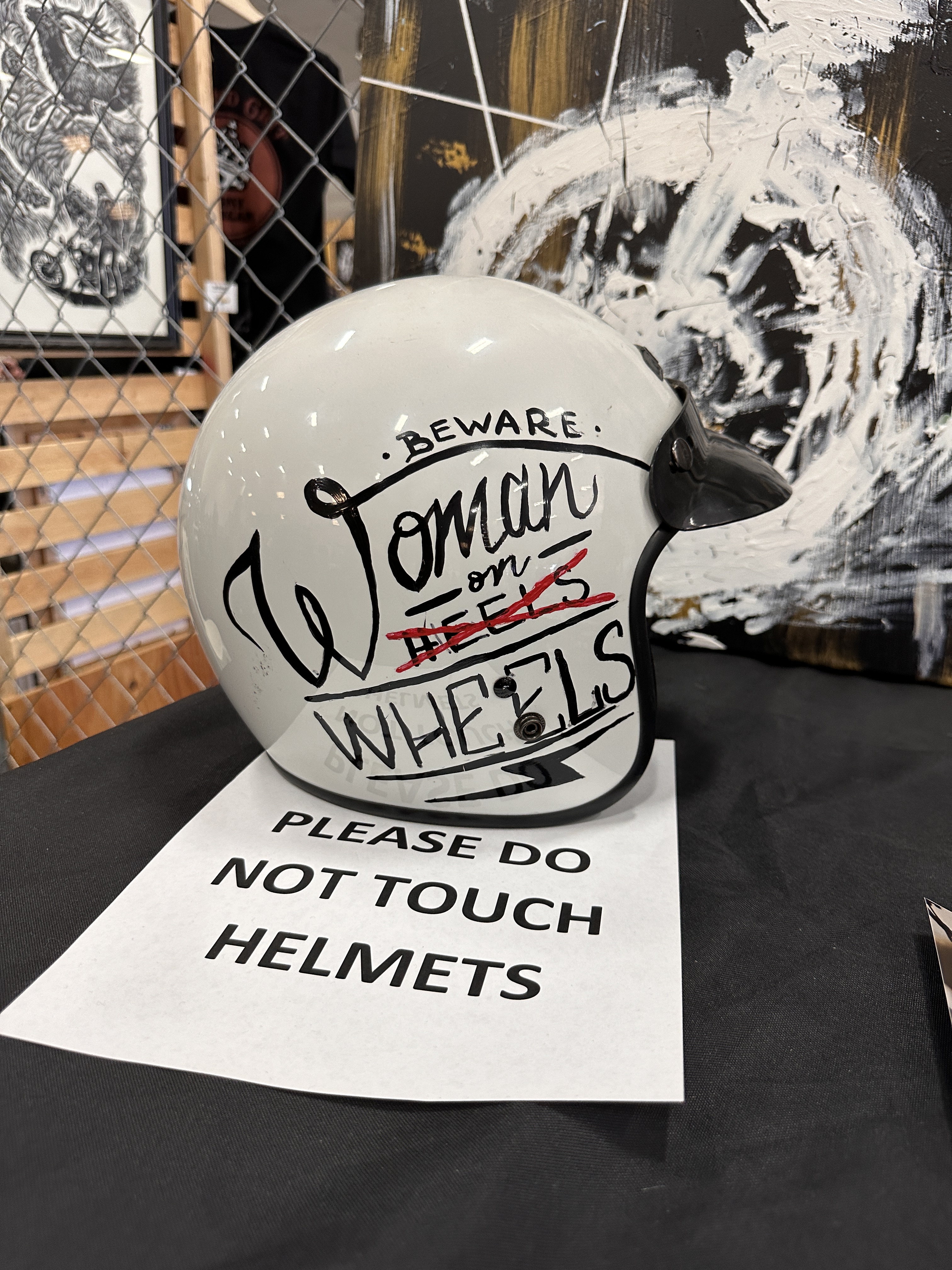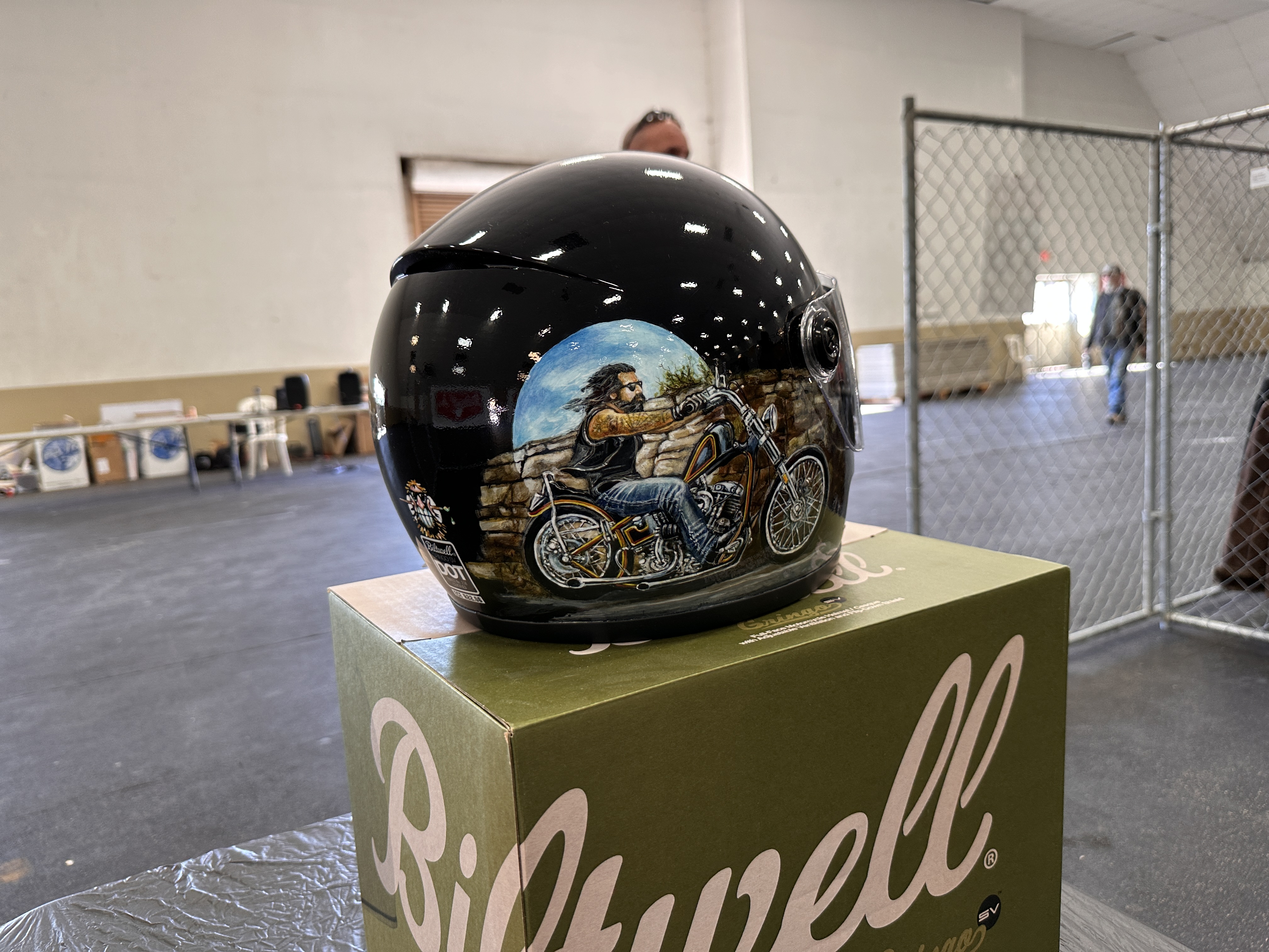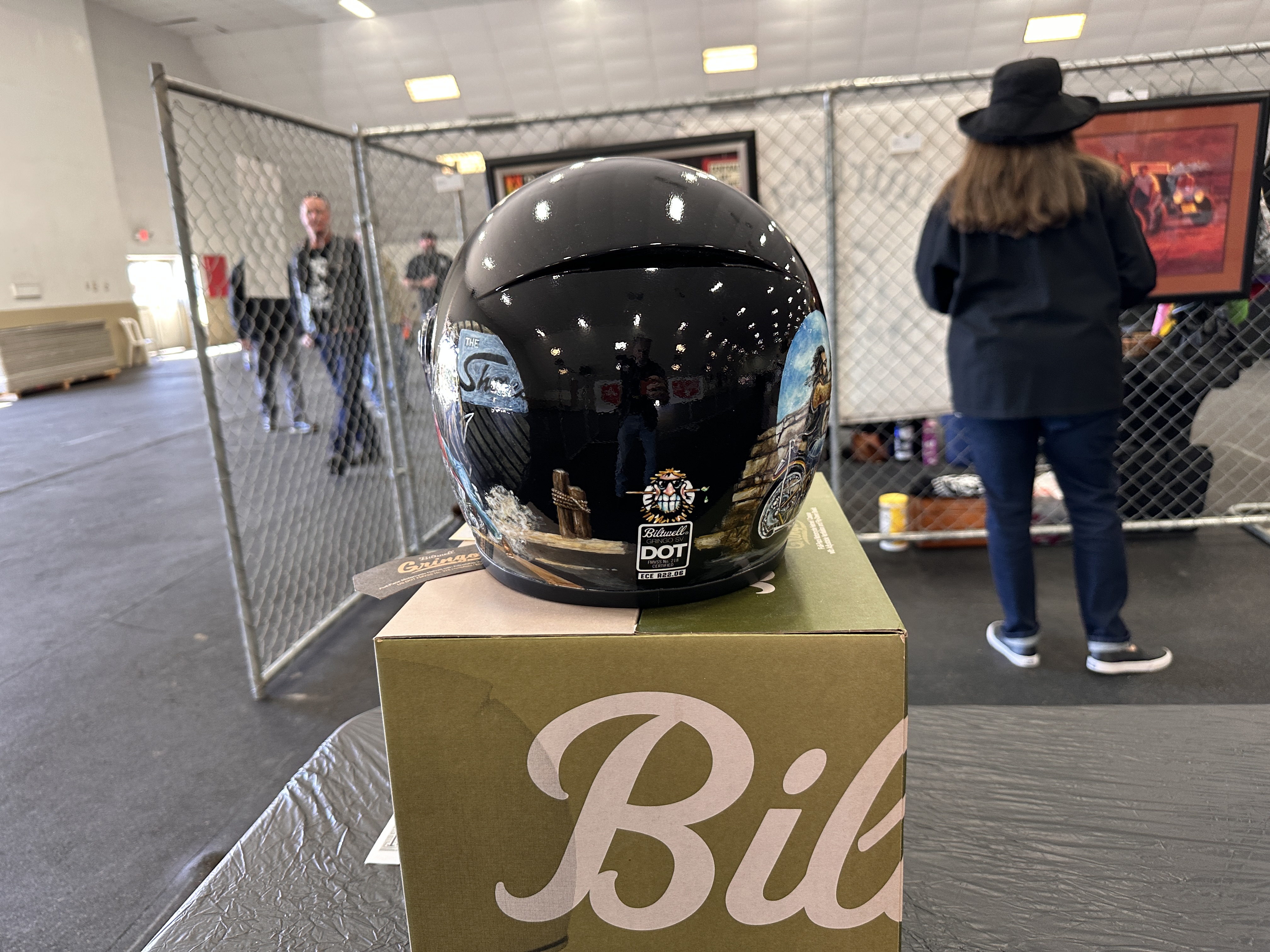 First were the helmets. As noted in my previous post, Biltwell invites artists to paint and display painted helmets, which are then offered for sale.