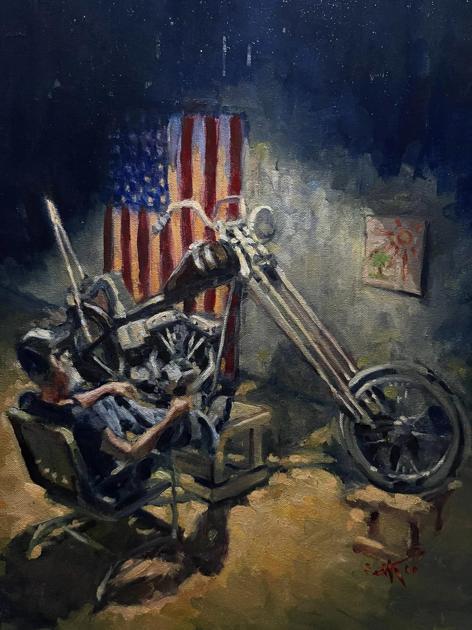 Captain America by artist Ray Drea.A unique take on the anti-heroes of Easy Rider (1969) by artist Ray Drea.A life-size Billy Bike, seen at the 20th Annual David Mann Memorial Chopperfest in February, 2024. Image courtesy of the author.Now that’s a chopper! Also spotted at the David Mann Chopperfest. Image courtesy of the author.