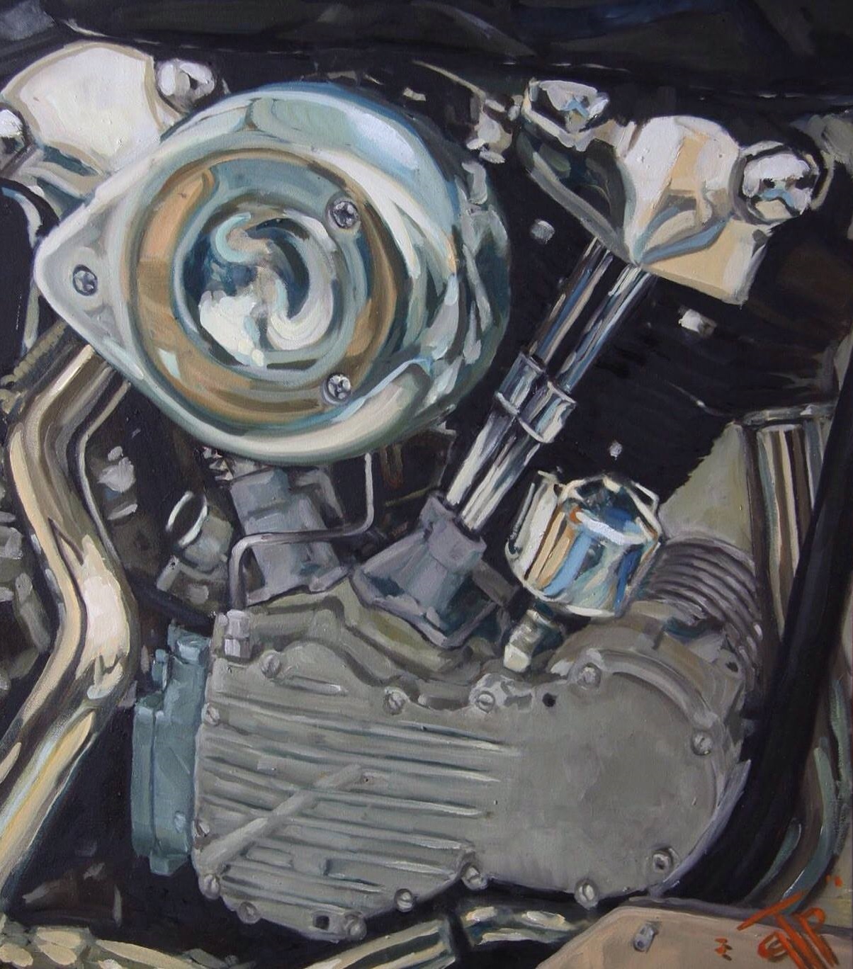 When he chooses to, GTP can get downright representational, as with the Sporty above and the moonlit chopper below. I find that painting particularly evocative.