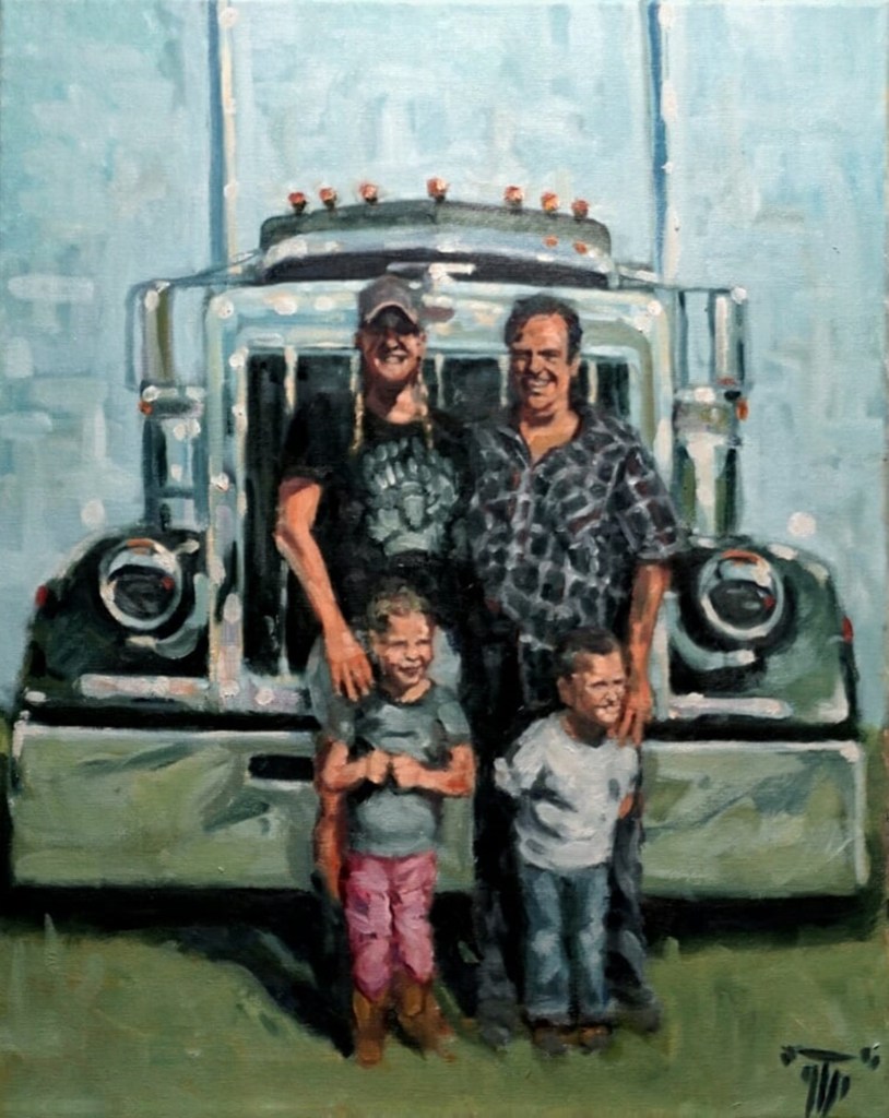 This looks suspiciously like the scenic and thrilling Tail of the Dragon, which leaves Maggie Valley, North Carolina, (home of Dale Walksler’s famous Wheels Through Time Museum) and meanders over the state line into Tennessee, with a challenging 318 curves in just 11 miles! 😮 Overconfident (or overserved) riders have come to unhappy ends in those hills, but it’s a destination ride for our tribe, and motorcyclists come from around the world to challenge the Tail and visit the motorcycle museum. Highly recommended, BTW.* Peterbilt Posse * by George ‘GTP’ Frizzell.* The Boys * by George ‘GTP’ Frizzell.* Pickup * by George ‘GTP’ Frizzell.* Cometic * by George ‘GTP’ Frizzell.* Chopper Couple * by George ‘GTP’ Frizzell.* Kiss *by George ‘GTP’ Frizzell.