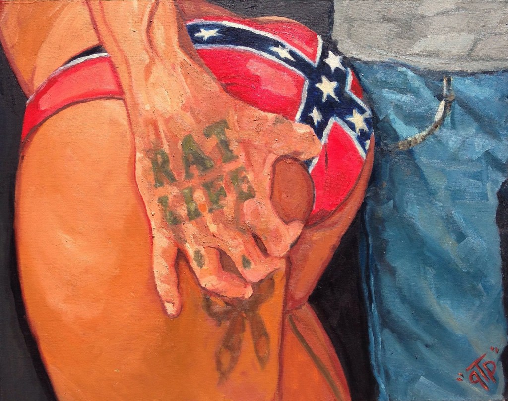Rebel by George ‘GTP’ Frizzell. The ‘RAT LIFE’ tattoo is one of GTP’s own.Oh Hell Yea [sic] by George ‘GTP’ Frizzell.