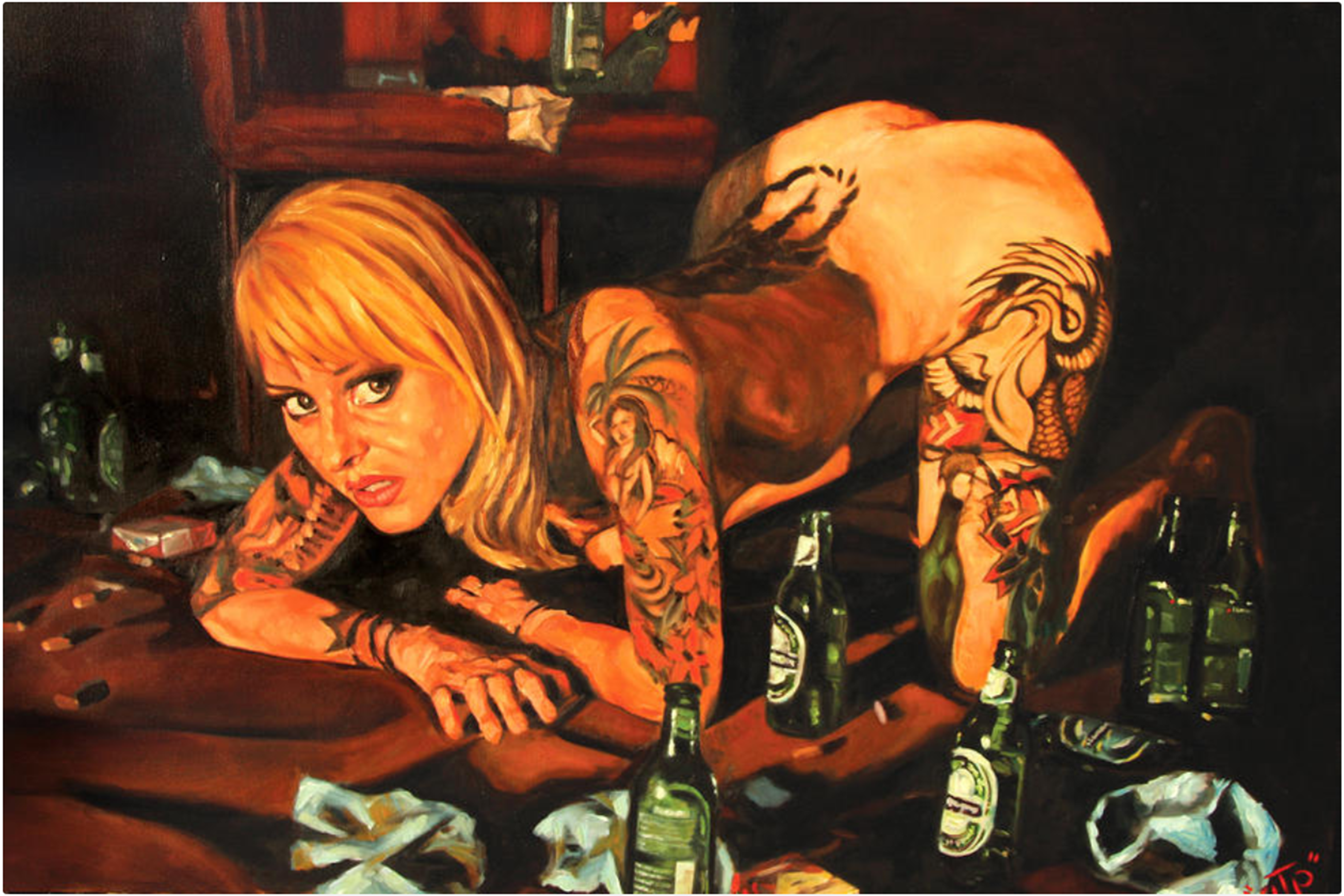 Blow Job by George ‘GTP’ Frizzell.Two of George’s more noticeable tattoos: WHITE TRASH ICONandRAT LIFE.