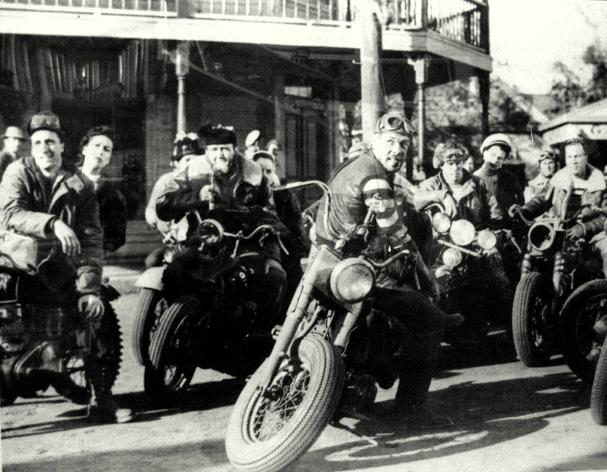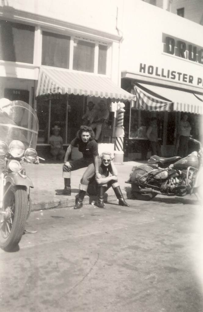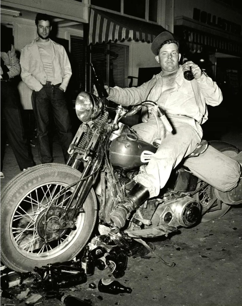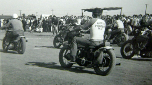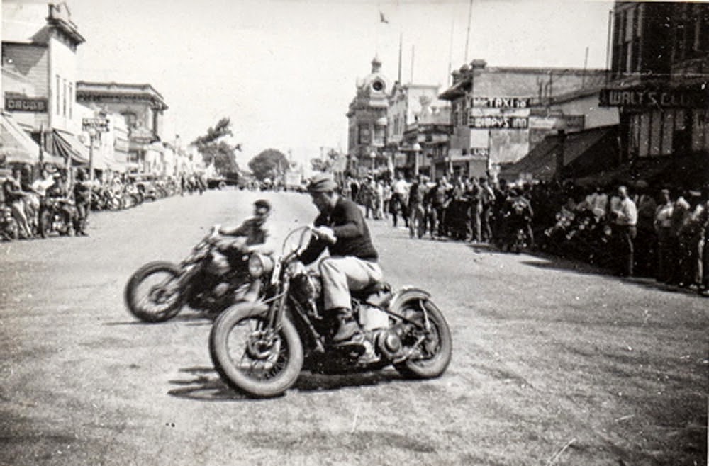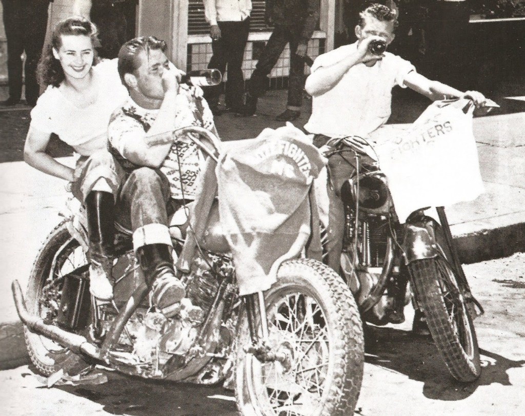 However, a small number of clubs, with names like Galloping Goose and Boozefighters, and comprised primarily of recently returned World War Two combat veterans, were more interested in partying than anything else, and began drinking, brawling, racing and performing motorcycle stunts on the town’s main drag.