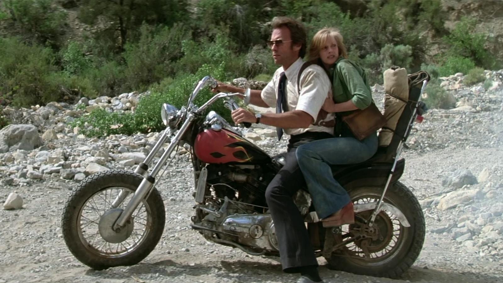 Clint Eastwood with his son.Clint Eastwood and Sondra Locke in ‘The Gauntlet’ (1977) aboard a panhead stolen from a ‘biker gang’ member they’d been brawling with.