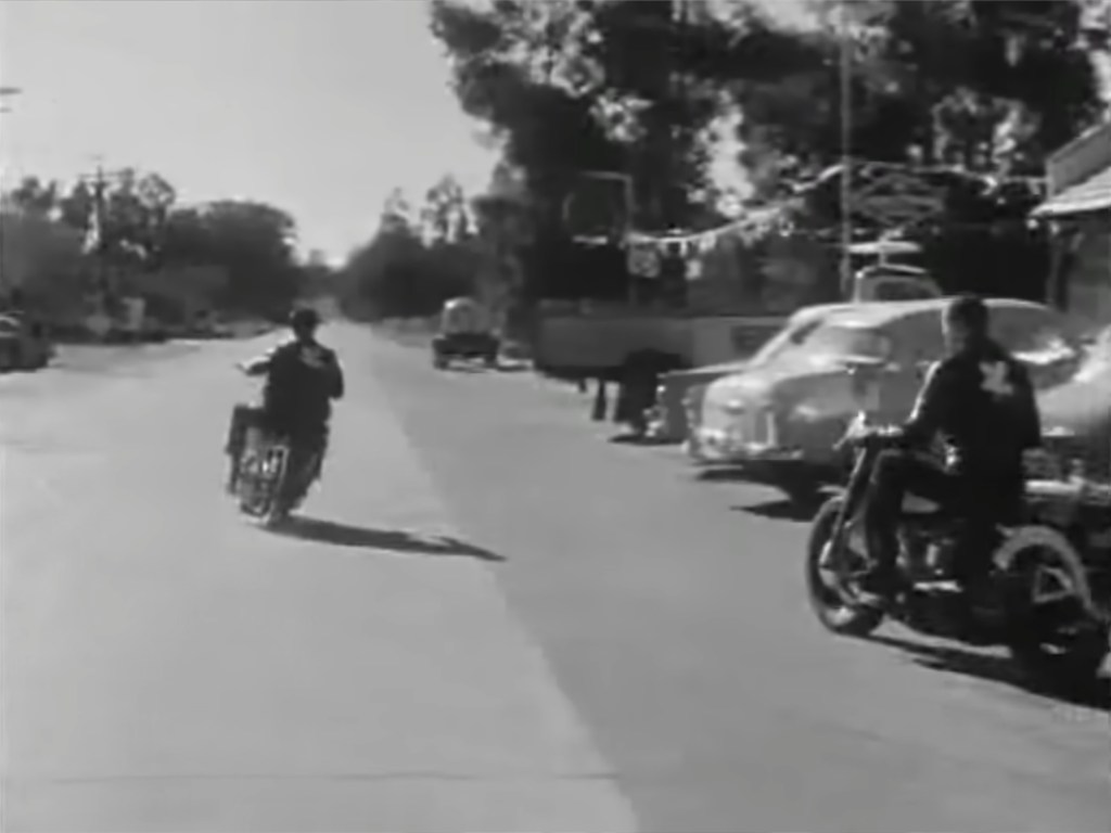 Rooney’s ‘Cyclist’s Raid’ and the real-life events at Hollister and Riverside helped inspire Stanley Kramer’s 1953 film The Wild One, which featured a smarmy motorcycle club leader (Marlon Brando as ‘Johnny Strabler’) opposite a far more realistic biker named ‘Chino’ (Lee Marvin) and his outlaw club, The Beetles. That, in turn, led to the April 1956 airing of the Highway Patrol episode titled ‘Motorcycle A’.