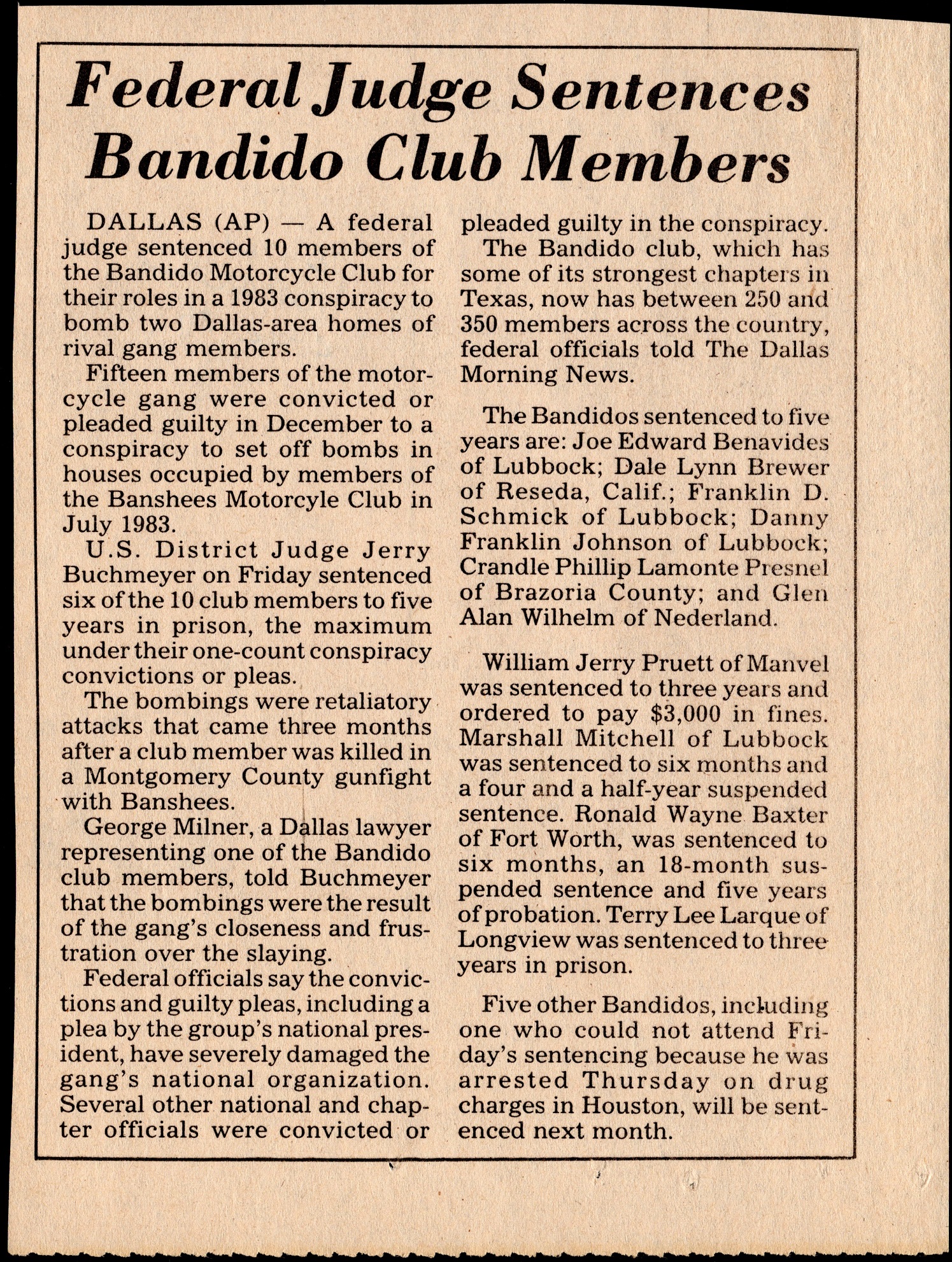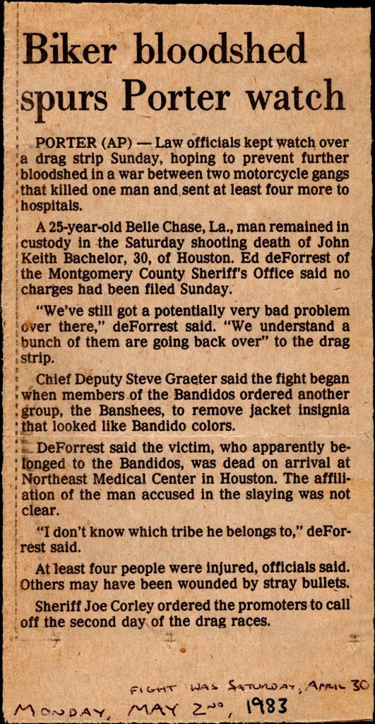I recall a run from Austin to Lake Buchanan, in a pack of thirty or so bikes. We stopped at a roadhouse in rural Burnet County for lunch. As we were leaving, we found ourselves surrounded by law enforcement of all stripes – local police, county sheriff’s deputies and state troopers – with weapons drawn as they confronted us. We were put through the mill. License, registration and vehicle identification numbers were slowly and laboriously checked via radio, one at a time, to drag the process out. Bikes were searched and riders questioned as we sweltered in the blistering sun for over an hour – and the sum total of their efforts was one (1) arrest for an outstanding traffic warrant!