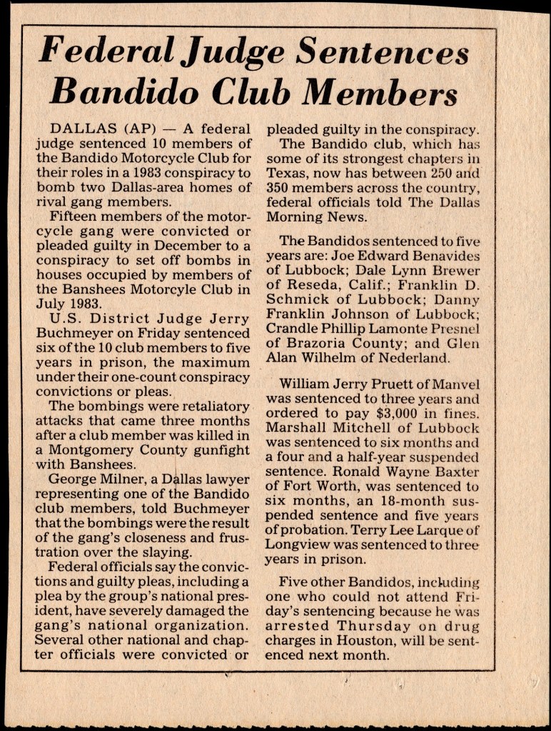 R.I.C.O. was also used to prosecute Hells Angel spokesman Sonny Barger and other members of the Oakland HAMC chapter. However, the fed’s case collapsed when they were unable to prove a ‘pattern of behavior’, or link the alleged illegalities to club policy. Barger, et alia, walked free, leaving prosecutors red-faced, frustrated and bitter.