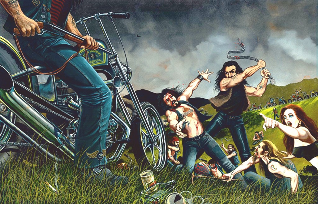 In another groundbreaking move, Easyriders made a practice of publishing motorcycle-themed illustrations and paintings by talented artists like Duffy Duggan, above, and cartoonist Hal Robinson, below.