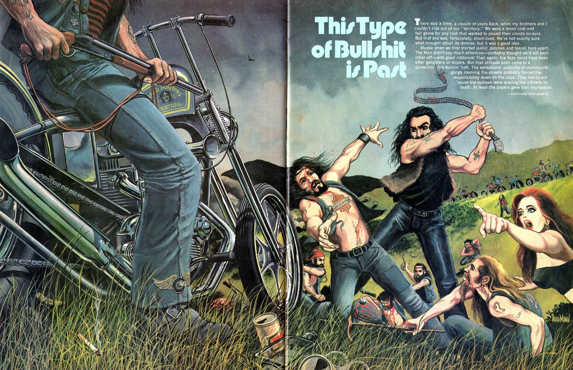 No, this new mag would be for hardcore bikers, patchholders and independents who lived, breathed, slept and dreamt motorcycles: preferably big American motorcycles like Harley-Davidson and Indian. The first issue trumpeted the new title as ‘For the Swinging Biker.‘ They later identified as ‘Entertainment for the Adult Biker.‘