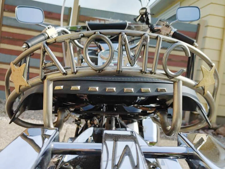 I finally realized that I needed to do something to protect myself, and I thought ‘Hey, what about a trike? After all, we’d built that one for Paul ‘way back when, and with Bud to help me I knew I could take my shovel and build a sharp-looking trike around it.