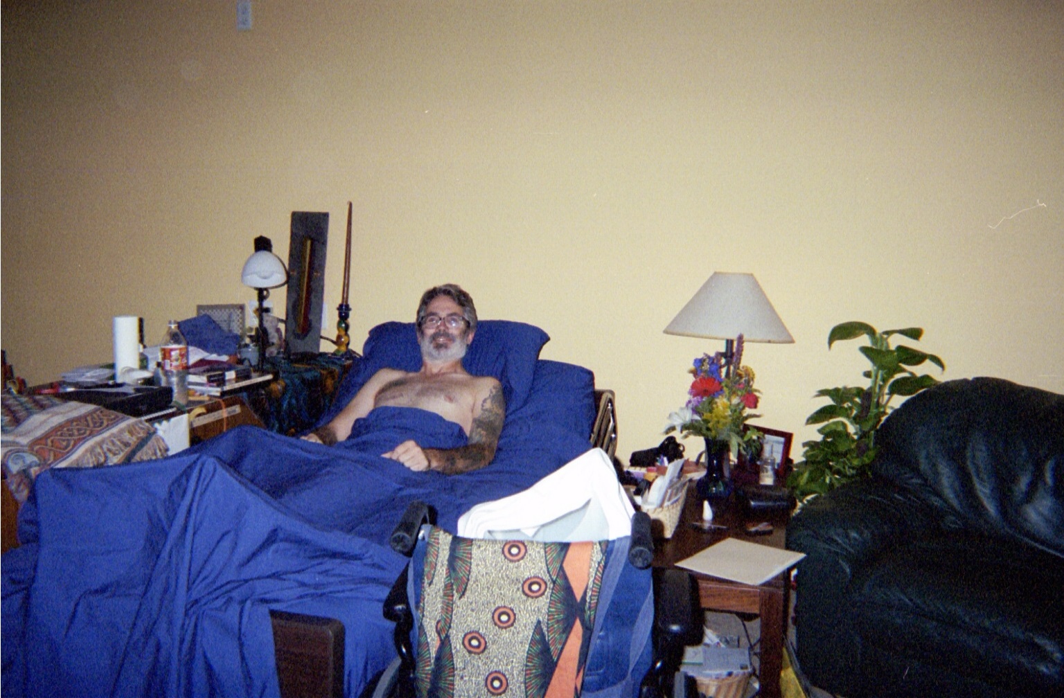 Anyhoo, I was still working out in the pool when I learned that one of the many ‘gifts’ I’d been given in my accident was a trick knee, that would give way without warning and drop me where I stood. In the pool, of course, this meant a sudden dunking and a faceful of highly chlorinated water. Once I was out of the wheelchair, the results could be considerably worse. I’d be strolling along, minding my own business, and suddenly I’m sprawled on the floor, or sidewalk, with skinned knees and palms. What fun!