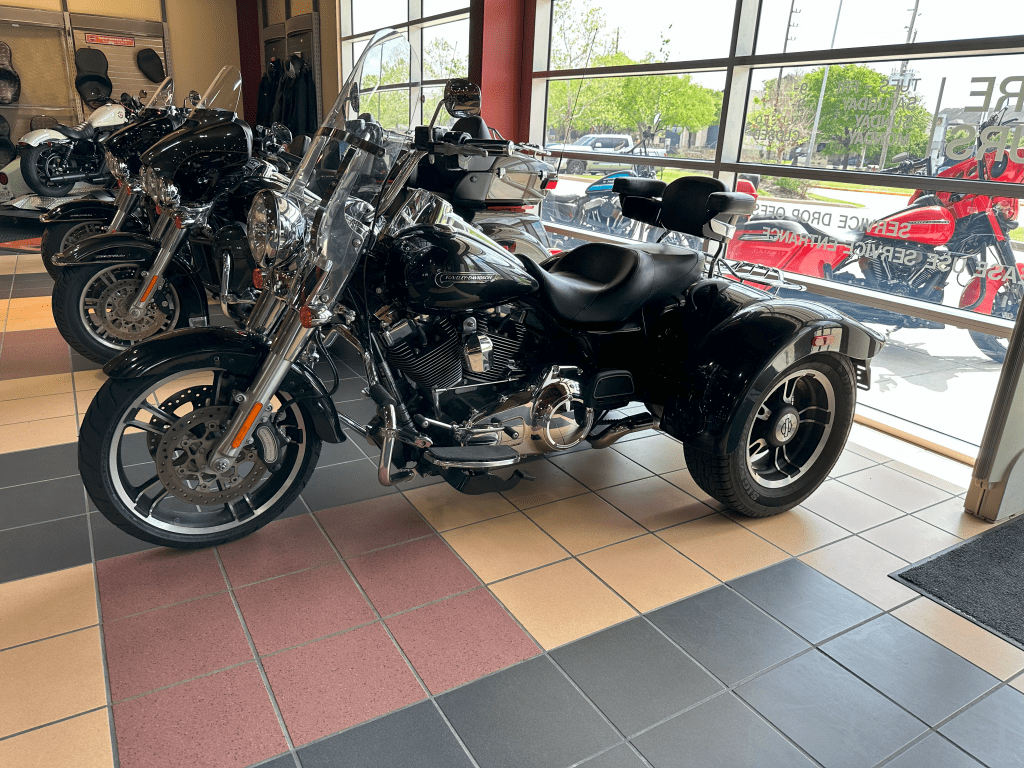 I found the bike I wanted at a stealership in Houston. It was a 2016 FLRT Freewheeler in Black Quartz, with 4” unbaffled Cobra cones and a factory rider backrest and luggage rack. I could have done without the backrest – thankfully, it’s removable with the push of a couple of tabs – and the luggage rack is actually kinda handy, but those straight pipes were fucking awful!