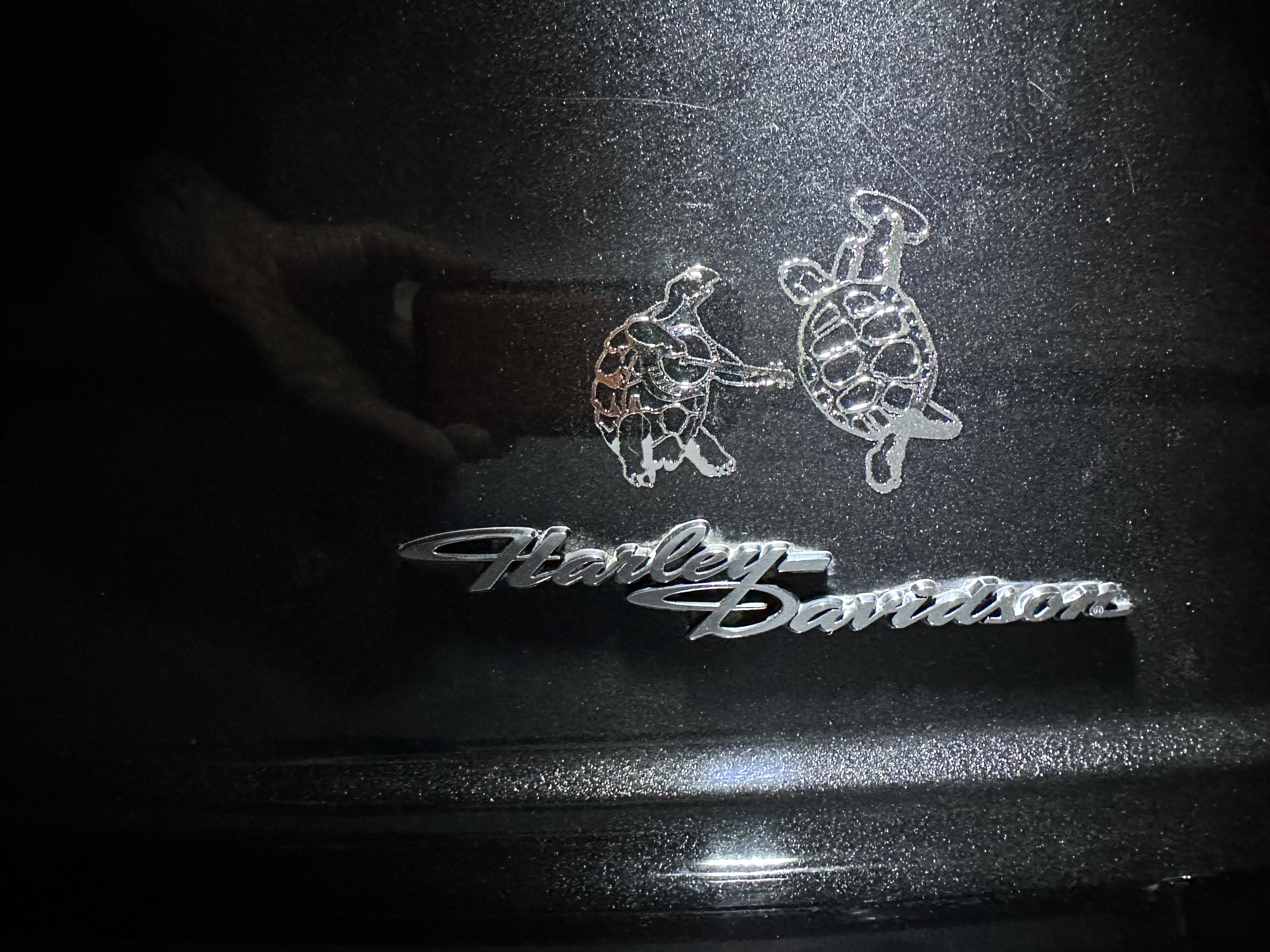 The 2016 Harley-Davidson FLRT Freewheeler I have christened The Box-Turtle. First there’s alliteration — Bitch, Banshee, Bagger and Box-Turtle — and then there’s that great honkin’ taco box on the back, like a turtle shell.I even found a metallic sticker of Heinrick Kley’s musical turtles, which I’d discovered several years before they appeared on the cover of The Grateful Dead’s Terrapin Station album.