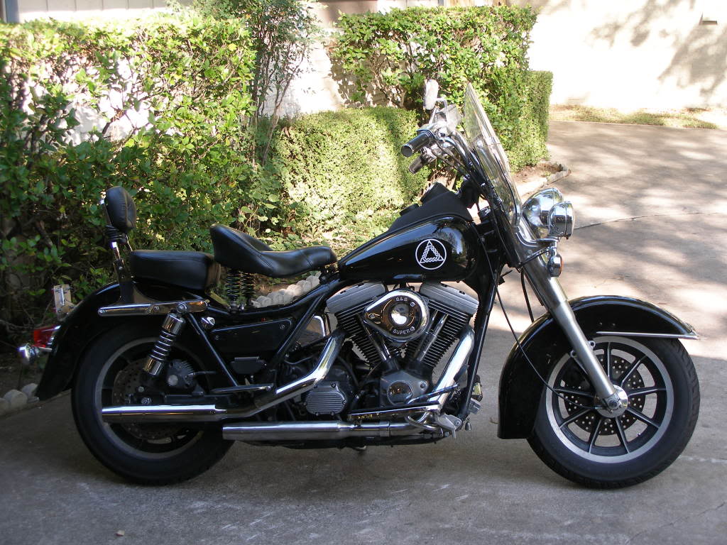 The 1987 FXRS I named The Banshee (because she knew how to wail) was ugly as sin when I got her, but had a powerplant rebuilt from a burn by Harley Bob, the same ace who figured out how to make The Bitch’s pogo stick saddle work. It also handled like a dream, had all the get-up-and-go an ol’ boy like me could need, and was the first Harley my wife could passenger on!