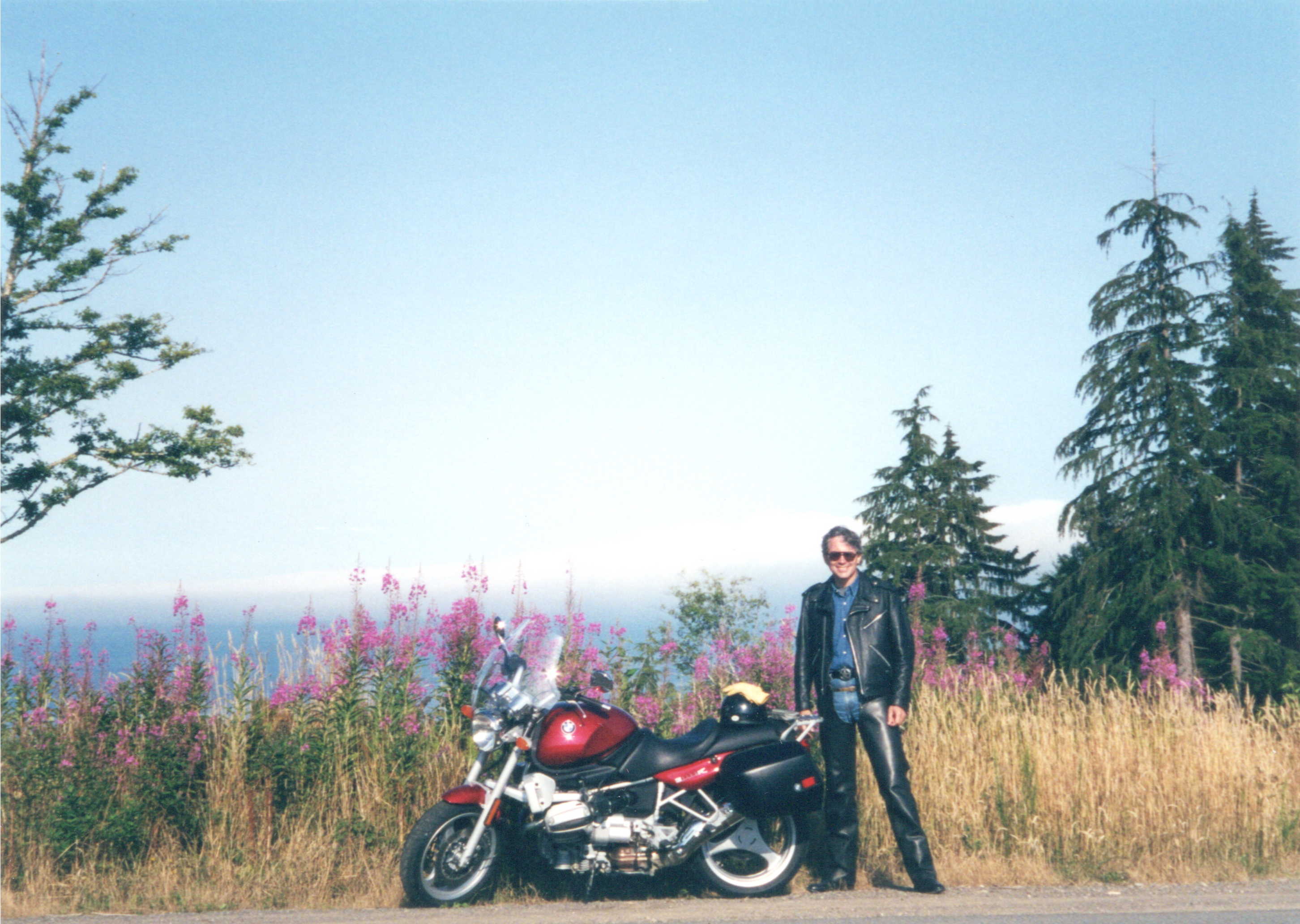 2000 BMW R1100R with a windshield and OEM bags, on the Olympic Peninsula in Washington State.