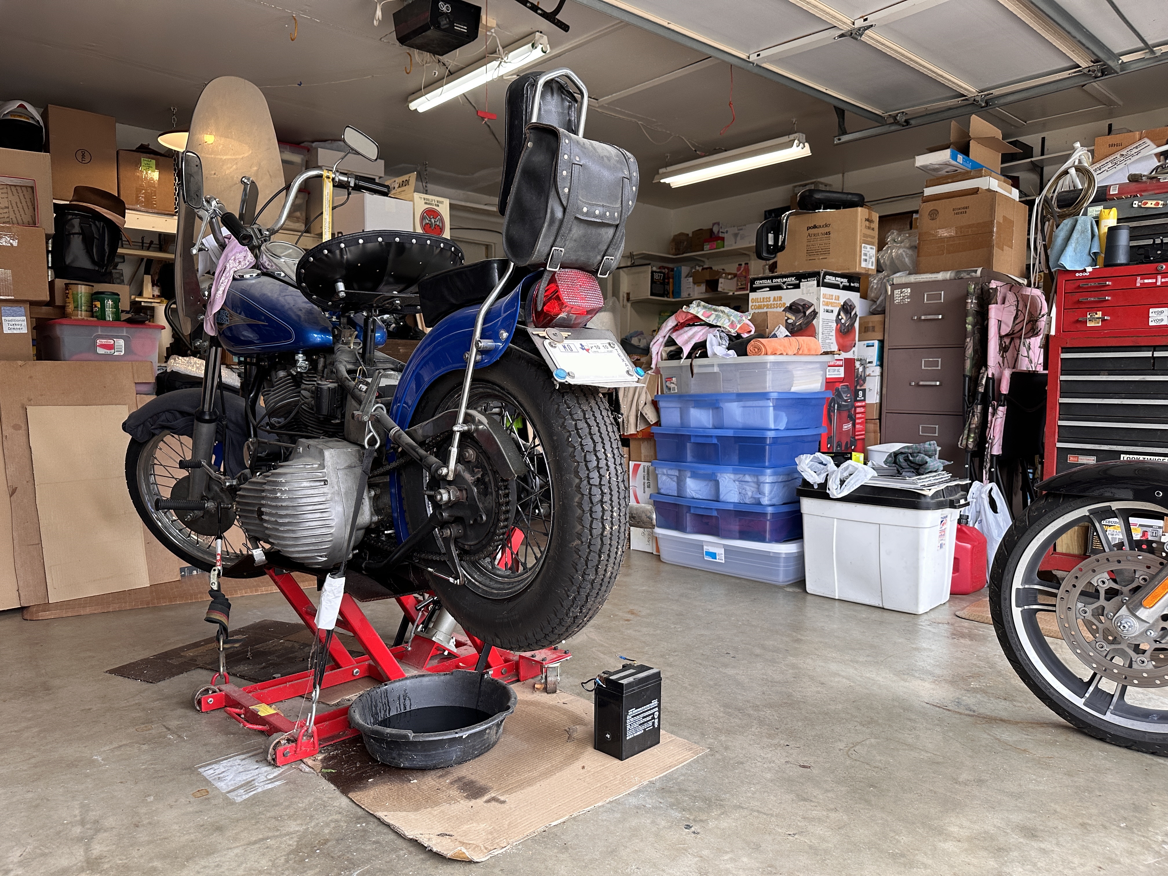 This project, BTW, prompted my return to Bud’s Motorcycle Shop, Version 2.0, for the first time since his death, and my realization that change, that constant motherfucker, had done its damage in my old home-away-from-home. Took two trips out there — one before I brought the trike home and another after, to exchange the first set of take-off mufflers for a set that fit — but I got it done!Then it was time to begin the learning curve.
