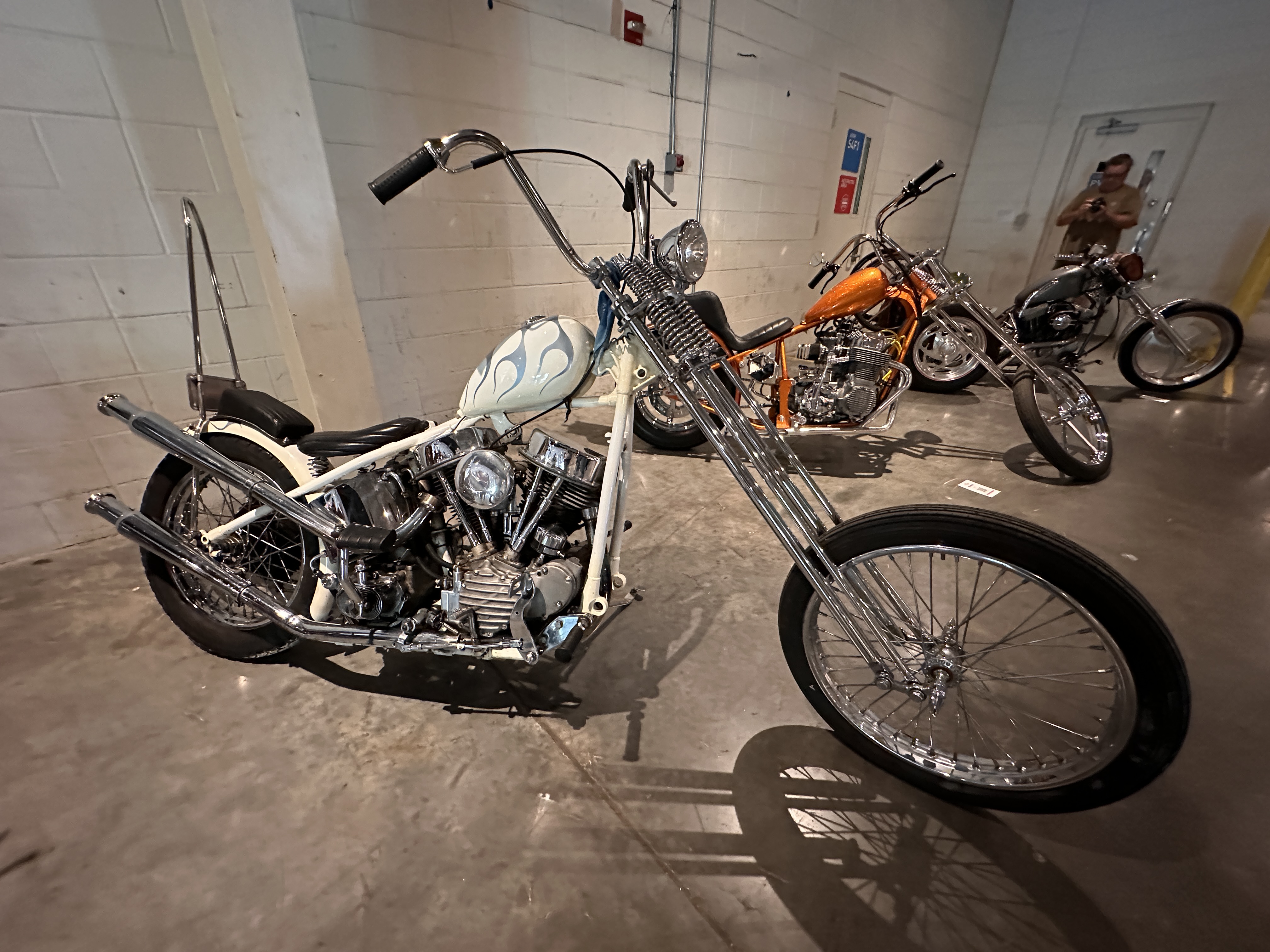 Captain America by artist Ray Drea.A unique take on the anti-heroes of Easy Rider (1969) by artist Ray Drea.A life-size Billy Bike, seen at the 20th Annual David Mann Memorial Chopperfest in February, 2024. Image courtesy of the author.Now that’s a chopper! Also spotted at the David Mann Chopperfest. Image courtesy of the author.