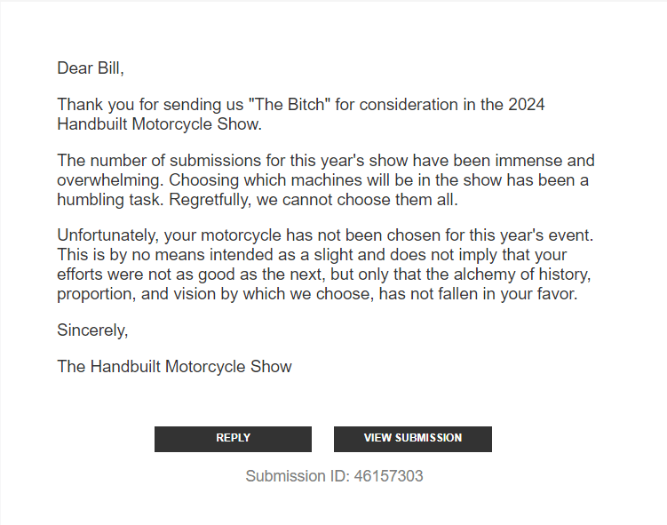 I rang Paughco, all confident and ready to talk turkey, only to be informed that Paughco no longer makes the frame I wanted. This was after the pandemic, when the supply chain was in disarray, and Ian, the fellow I spoke with, told me they couldn’t get the tubing they needed, but it didn’t matter because they couldn’t hire enough qualified welders, either! 😮