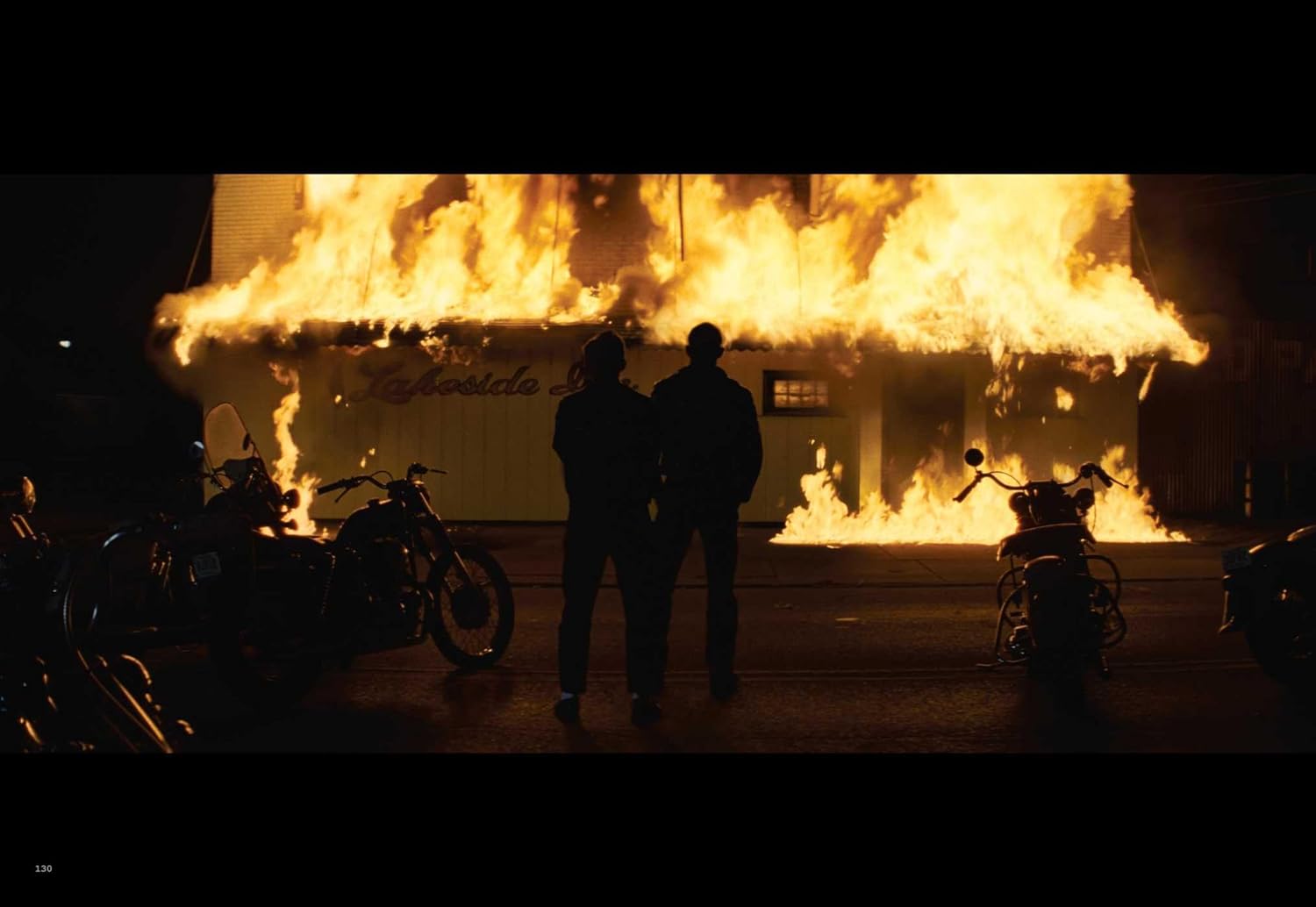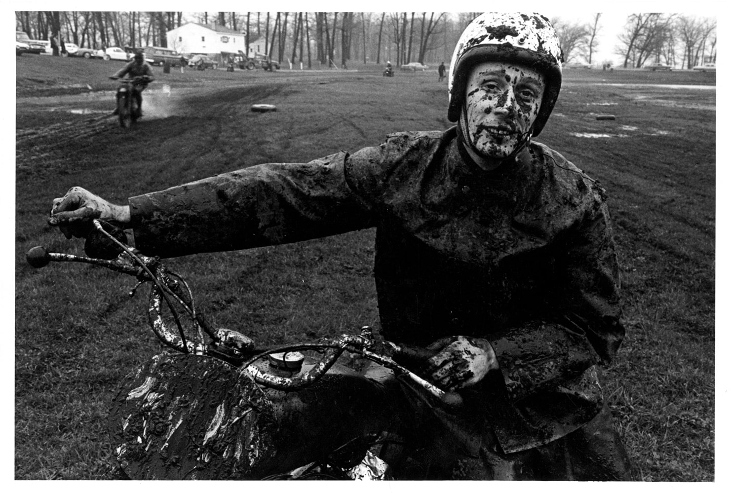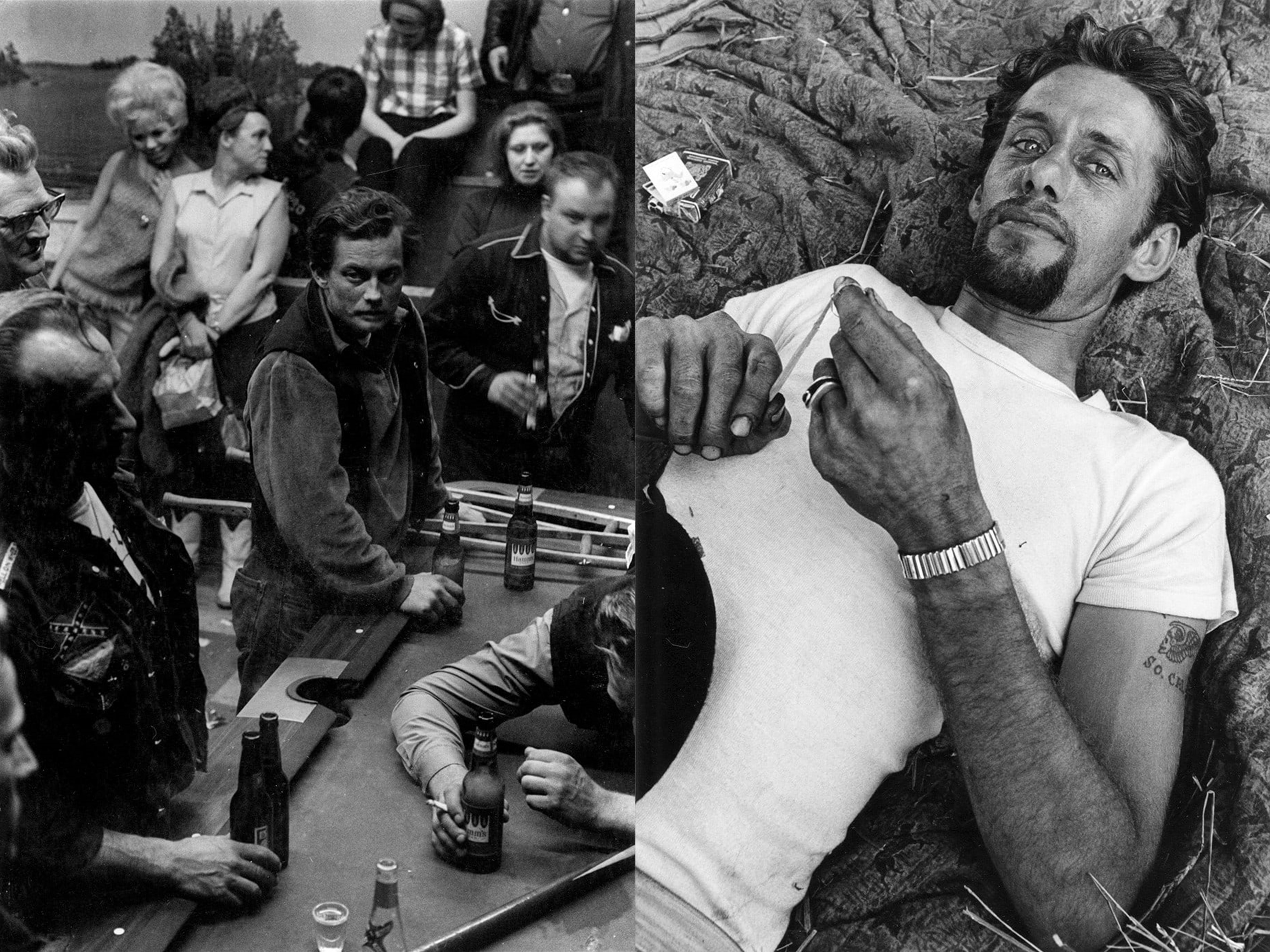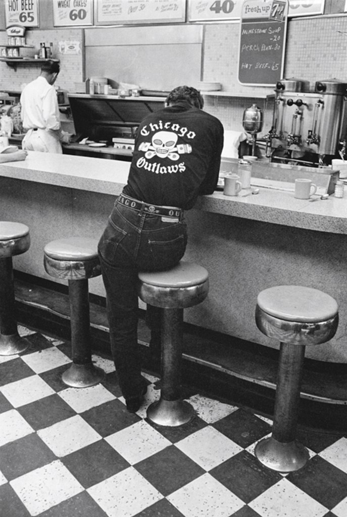 And, of course, there were hundreds and hundreds of pics of bikers, male and female, outlaw and straight, on original or restored classics or wild-as-fuck radical customs. They were jamming down the road, hair floating in the breeze and tight grins on their faces, or scowling at the camera and flipping the universal biker salute – one raised finger – to friend and foe alike. They were drinking beer, wrestling in the mud of a campsite, or tearing a motorcycle apart beneath a tree as friends gathered to offer assistance….